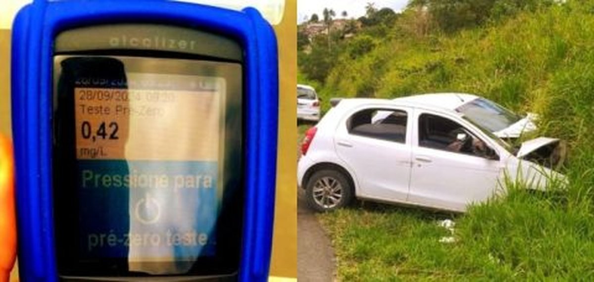 Foto: Divulgação/PRF / Na manhã deste sábado (28), a Polícia Rodoviária Federal (PRF) foi acionada para atender um grave acidente envolvendo dois veículos na BR-101, no município de Sapeaçu, a 160 quilômetros de Salvador. A colisão frontal foi causada por um motorista embriagado, que dirigia na contramão e bateu de frente com um carro que seguia corretamente pela via. Segundo testemunhas, o condutor do Toyota Etios estava realizando manobras perigosas e, ao tentar uma ultrapassagem proibida em uma curva, perdeu o controle do veículo e colidiu frontalmente com um Ford…