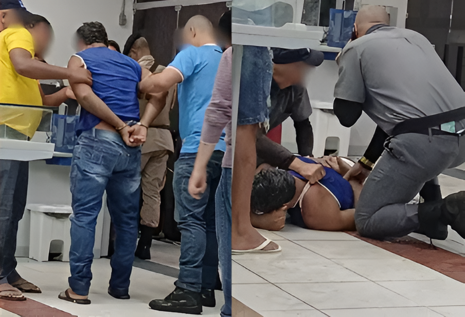 Foto: Reprodução / Imagens de câmeras de segurança flagraram o momento em que um homem, supostamente um policial militar, saca uma arma dentro de um bar no bairro de Stella Maris, em Salvador, após uma discussão na madrugada deste sábado (30). O vídeo mostra o suspeito sendo contido por outras pessoas, que evitam uma tragédia dentro do estabelecimento. O caso, que ocorreu por volta da 1h30 da manhã, começou após um desentendimento. Nas imagens, o homem, vestindo uma regata branca, aparece discutindo de forma exaltada com outro frequentador. Em um…
