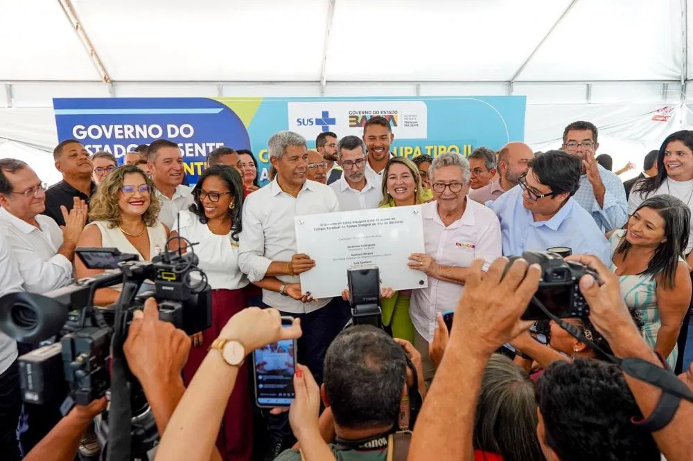 Foto: Juliano Sarraf / Ascom PMC | Integrando uma ampla agenda de anúncios voltados ao desenvolvimento de Camaçari, foi entregue nesta sexta-feira (10) o novo Sistema de Esgotamento Sanitário de Arembepe. A obra, executada pela Embasa, vinculada à Secretaria de Infraestrutura Hídrica e Saneamento do Estado (SIHS), contou com investimento de R$ 40,2 milhões em parceria com o Governo Federal e beneficiará cerca de 16.776 moradores da região. A solenidade ocorreu no terreno onde será construída a futura UPA Tipo II de Abrantes e reuniu o governador da…