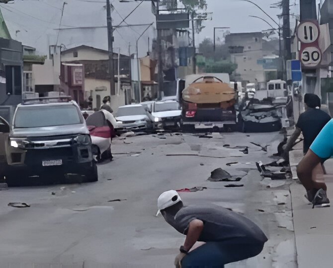 Foto: Reprodução/TV Bahia / Um grave acidente foi registrado na tarde desta terça-feira, 21, no centro da cidade de Nazaré, no Recôncavo da Bahia. Um caminhão-pipa desgovernado colidiu com pelo menos dez veículos, incluindo uma viatura da Polícia Militar, deixando duas pessoas feridas. De acordo com informações da Polícia Militar da Bahia, uma guarnição do 14º Batalhão (BPM) estava reforçando o policiamento na região central do município quando foi surpreendida pelo veículo descontrolado. Ainda não se sabe o que causou a perda de controle do caminhão, mas a força do…