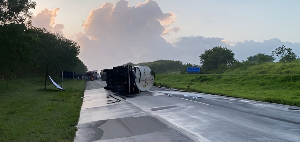 Foto: Divulgação / Após mais de 13 horas, a pista da BR-324 foi liberada. A interdição aconteceu neste sábado, 25, após o tombamento de um caminhão-tanque que transportava combustível, no km 552, trecho de Amélia Rodrigues, sentido Feira de Santana. A liberação aconteceu após o veículo ser removido da via, que foi limpa em seguida, seguindo informações do Departamento Nacional de Infraestrutura de Transportes (DNIT). Mais cedo, o DNIT chegou a informar que o acidente com o caminhão-tanque causou cerca de 15 quilômetros de retenção no sentido Feira de Santana.…