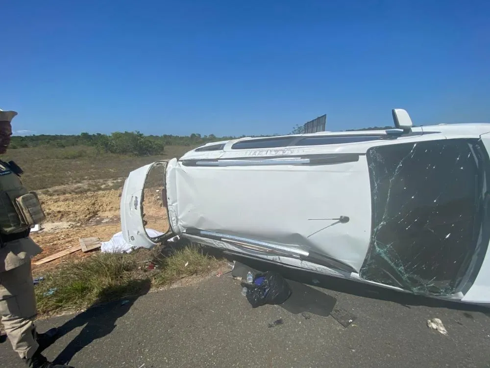 Foto: Reprodução / Redes Sociais / Um grave acidente foi registrado por volta das 13h desta segunda-feira (05) na BA-530, na Via Atlântica, conhecida como Estrada da Cetrel, sentido Polo, em Camaçari. A batida resultou em uma vítima fatal e cinco pessoas feridas. Segundo informações repassadas pela guarnição do Posto de Arembepe, dois veículos colidiram frontalmente, sendo que um deles capotou após o impacto. Ao chegar ao local, os policiais encontraram os automóveis às margens da rodovia, além da confirmação do óbito ainda na via. Conforme apuração do portal Mais…
